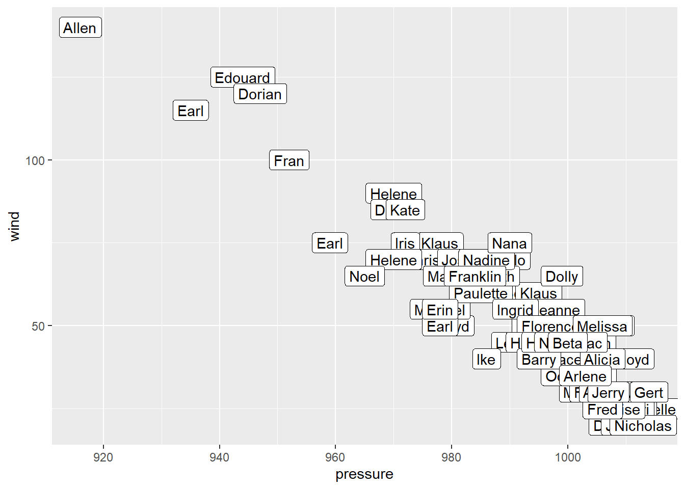 Para este exemplo foi usada a tabela storms do pacote dplyr, já carregado como dependência do pacote tidyverse.