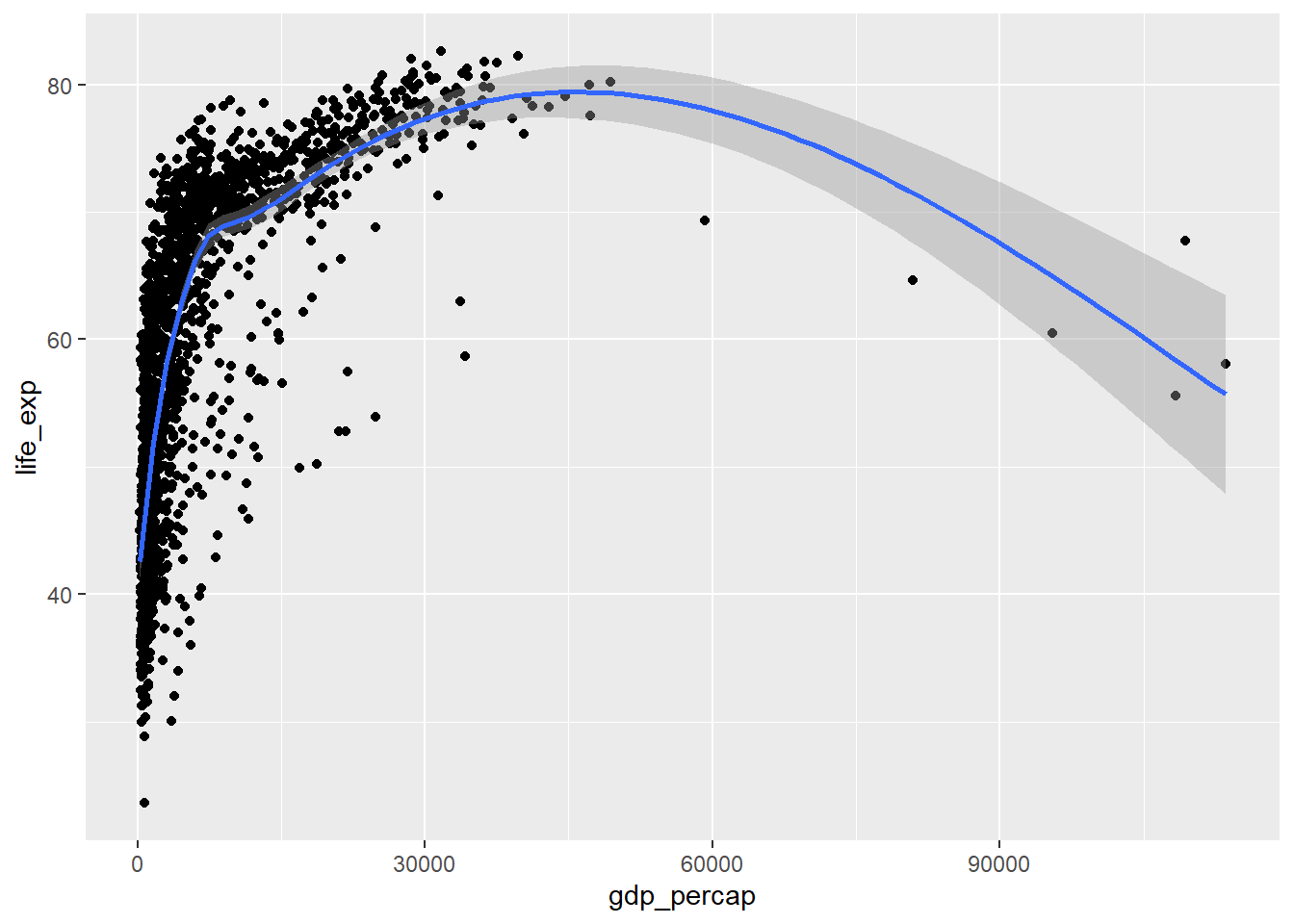 dados_gapminder ggplot(aes(x=gdp_percap, y=life_exp))